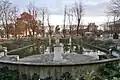 Deux plus petits points d'eau ronds se trouvent sur les pelouses environnantes. La statue de la Tigresse apportant un paon à ses petits œuvre d'Auguste Caïn datant de 1873, décore les abords du petit bassin rond situé du côté sud.