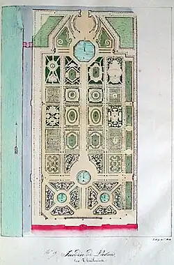 Les bassins intégrés dans le jardin datent du XVIIe siècle. Ils firent partie des plans du jardin royal réalisé par André Le Nôtre, le grand architecte innovateur de l'époque et réalisateur des Jardins de Vaux-le-Vicomte. La restauration des bassins a été réalisée en 1990.