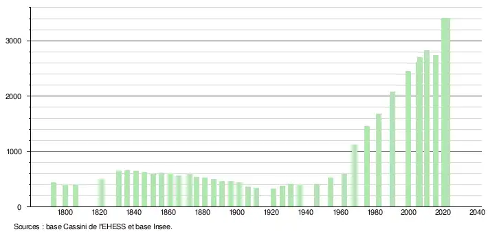- ↑ Fiches Insee - Populations de référence de la commune pour les années 2006, 2007, 2008, 2009, 2010, 2011, 2012, 2013, 2014, 2015, 2016, 2017, 2018, 2019, 2020, 2021 et 2022.