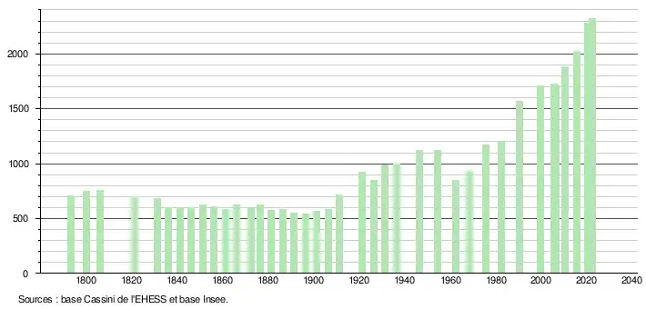 - ↑ Fiches Insee - Populations de référence de la commune pour les années 2006, 2007, 2008, 2009, 2010, 2011, 2012, 2013, 2014, 2015, 2016, 2017, 2018, 2019, 2020, 2021 et 2022.
