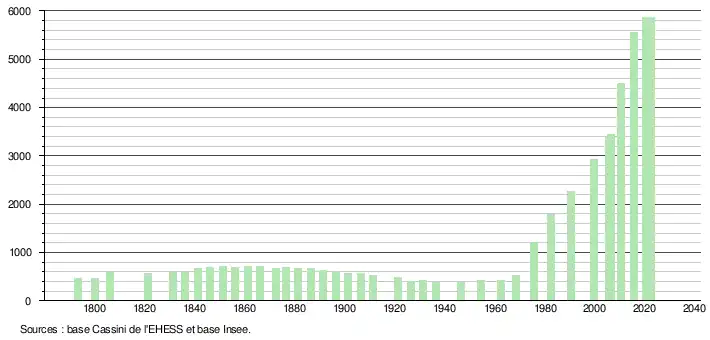 - ↑ Fiches Insee - Populations de référence de la commune pour les années 2006, 2007, 2008, 2009, 2010, 2011, 2012, 2013, 2014, 2015, 2016, 2017, 2018, 2019, 2020, 2021 et 2022.