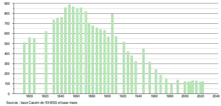 - ↑ Fiches Insee - Populations de référence de la commune pour les années 2006, 2007, 2008, 2009, 2010, 2011, 2012, 2013, 2014, 2015, 2016, 2017, 2018, 2019, 2020, 2021 et 2022.