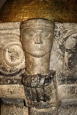 Les faces orientales et occidentales de la cuve présentent un décor de colonnettes surmontées d'arcs en plein cintre.