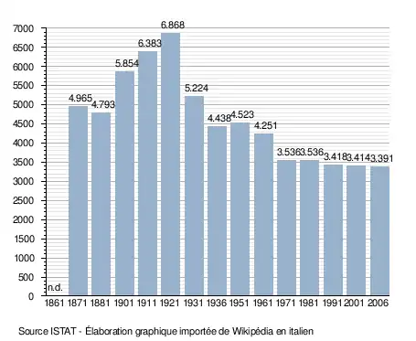 - ↑ (it) Popolazione residente e bilancio demografico sur le site de l'ISTAT.
