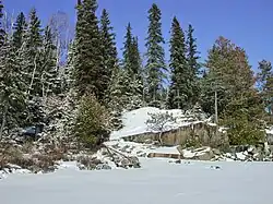 La situation difficile pour la flore donne aux arbres une structure rabougrie. Les sections sur le roc sont dominées par le thuya occidental et le pin blanc, deux arbres pouvant pousser en milieu xérique. L'épinette noire domine dès que le sol devient plus profond. L'épinette noire est alors accompagné du thuya occidental et du pin blanc auquel s'ajoute de sapin baumier et le bouleau à papier. La forêt compte beaucoup de thuya et de pin en dépérissement, ainsi que des arbres morts et des chicots. Les pins blancs ne dépassent pas 20 m de hauteur. Leur diamètre atteint parfois 30 cm. La forêt n'a pas connu de perturbation depuis au moins 265 ans[2].