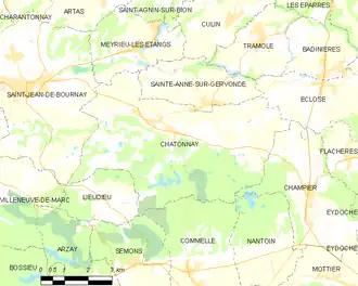 • la Gère, affluent du Rhône et qui prend sa source à l'étang de la Grande Tuilière, sur le territoire de la commune de Châtonnay, à 549 m d'altitude et ses affluents, tels que le ruisseau de Girieux, l'Auron, le Grand Ruisseau et la Valaise[10]