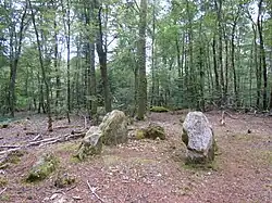 - ↑ R. F. Le Men, Fouilles d'un tumulus dans la forêt de Carnoët, commune de Quimperlé (Finistère), Revue archéologique, 1868 (lire en ligne)