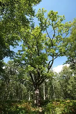 - le chêne à 48 %, principalement le chêne pédonculé (Quercus robur L. = Q. pedunculata Ehrh.) et le chêne rouvre (ou chêne sessile) (Quercus petraea) ;