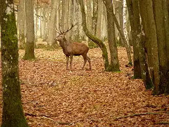 Pratiquement tous les mammifères qui peuvent se rencontrer normalement à ces latitudes sont présents dans la forêt de Rambouillet mais le cerf constitue l'animal emblématique du lieu. On trouve, selon la richesse du milieu naturel, de 2 à 4 cerfs pour 100 hectares de forêt. Le sanglier est également très présent comme l'indique le nombre de bêtes abattues sur la seule forêt domaniale (200-300 par an pour les années 1995-2000 mais 700 par an en 2002-2004). Le troisième grand mammifère présent est le chevreuil. Les prédateurs naturels de ces grands animaux, le loup et le lynx, ont disparu. Pour limiter la pression des populations sur leur milieu naturel, des plans de chasse sont organisés périodiquement[27].