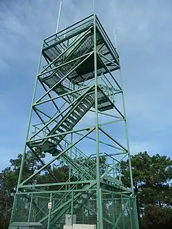 Enfin, il est à noter qu'une école élémentaire destinée aux enfants du personnel forestier a été en activité de 1881 à 1963[29]. Autres éléments du patrimoine forestier, les tours d'observation des Brisquettes et de la Tour du Gardour (point culminant de la forêt et du Pays Royannais) servent à prévenir les départs de feu.