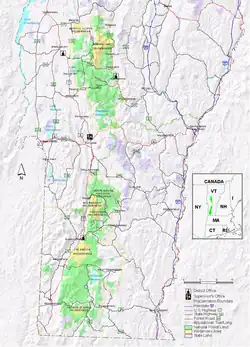 La forêt de 1 603,4 km2 couvre un territoire à l'ouest du Vermont. Elle est comprise dans les comtés de Bennington, de Addison, de Rutland, de Windham, de Windsor et de Washington.