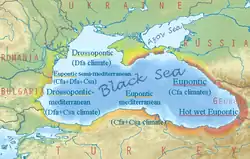 - ↑ Özhan Öztürk, Karadeniz : ansiklopedik sözlük (Dictionnaire encyclopédique turc de la Mer Noire), 2 tomes, éd. Heyamola, Istanbul 2005 et les sites de climatologie britannique , grec , roumain , ukrainien et russe .