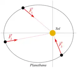 - Le mouvement des planètes, sous l'action du champ newtonien du Soleil , , où est la constante de Gauss, connue avec une précision remarquable (10 chiffres significatifs), est celui décrit par les lois de Kepler, démontrées en 1684 par Newton dans le « de Motu », qui fut réécrit, (dès que Newton eut claire conscience du théorème de Newton-Gauss au travers de la loi universelle de la gravitation), en un traité : les Principia (1687) (voir Démonstration des lois de Kepler).