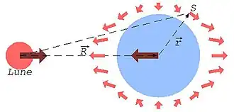 - ↑ Une manière rapide, mais qui n'explique rien, de dériver cette expression est d'écrire le potentiel gravitationnel total et de le développer en puissance de . On retrouve la force en prenant le gradient par rapport à du terme d'ordre 2.