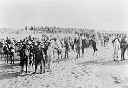 La Force expéditionnaire égyptienne (The Egyptian Expeditionary Force (EEF)) est créée en mars 1916 pour diriger les troupes du Commonwealth britannique en Égypte pendant la Première Guerre mondiale. Elle est commandée à l'origine par Sir Archibald Murray puis, plus tard, par Edmund Allenby. Elle se compose des XXe et XXIe Corps britanniques, sous le commandement respectif des généraux Philip Chetwode et Edward Bulfin (en) renforcés par le Desert Mounted Corps formé de quatre divisions de cavalerie (principalement d'origine australienne) sous le commandement du lieutenant-général australien Sir Henry George (Harry) Chauvel. La composante aérienne est la brigade palestinienne du Royal Flying Corps et plus tard, de la Royal Air Force.