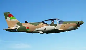 | SIAI Marchetti SF.260 | Attaque légère et lutte anti-guerilla | SF.260W | 19 | Le Burkina Faso reçoit 19 appareils de la Libye, de Philippines et d'Italie. 6 d'entre eux, des SF-260W, sont revendus sur le marché civil en 2006. |