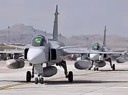 La Suède est un des rares pays à avoir une forte industrie aéronautique, cette fonction est principalement occupée par Saab. Cela a abouti sur la conception d'avions de combat comme le JAS 39 Gripen, le Saab 37 Viggen ou encore le Saab 35 Draken qui n'ont rien à envier à leurs concurrents. Le Gripen l'avion le plus récent a réussi à s'exporter au Brésil, Thaïlande, Hongrie, Afrique du Sud et République Tchèque.