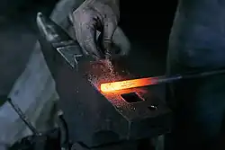 Au Moyen Âge, le forgeron utilisait le plus souvent une enclume et un marteau pour façonner des morceaux de bronze, de cuivre ou d'argent, après les avoir portés à incandescence dans des fours hautement réfractaires. On appelle forge l'atelier du forgeron, et forgeage son activité[1].