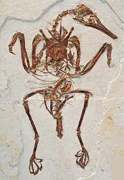 Un oiseau primitif à courte queue (pygostylien). Présent également dans la formation d'Yixian. |