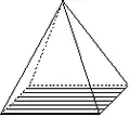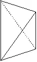 - les « formes ouvertes » dont les faces ne forment pas rigoureusement un volume ; une ou plusieurs faces du volume n'appartenant pas à la forme cristalline. Dans les représentations graphiques, on reconnaît ces formes à l'absence d'une ou plusieurs faces ; absence qui peut être figurée par exemple à l'aide de polygones hachés comme ci-dessous ;