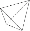 | 26 | Disphénoïde tétragonal | 42m | 4 | Forme fermée composée de quatre triangles isocèles. Parfois appelée improprement « tétraèdre tétragonal » (le tétraèdre est une forme cubique). | ![]() |
