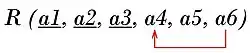 Dans les articles qui suivent, nous prendrons comme exemple théorique, une relation notée R ayant les attributs A1, A2, A3, A4, A5, A6 dont les trois premiers sont le déterminant et les trois derniers le déterminé.