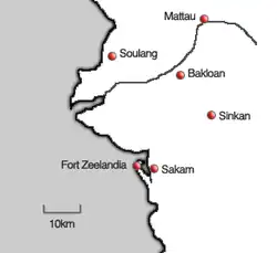 Le Fort Zeelandia est érigé sur les côtes sablonneuses, en tant que centre politique, commercial[4], ainsi qu'en base militaire pour défendre la mer intérieure de Taijiang[1]. La localisation de la forteresse permet ainsi de faciliter l'arrivée des renforts depuis Batavia[3]. Le village développé correspond au quartier contemporain Anping, de la ville de Tainan[1],[4]. Un second fort plus modeste, Fort Provintia, est bâti en 1653, sur le village de Sakam[5], sur la rive opposée de la mer intérieure de Taijiang[3].