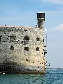 - 1857 : la construction du fort s'achève avec le second étage (cote niveau + 13,90 m) : idem + commandant, officiers, infirmerie, et terrasse avec son couronnement (cote niveau + 19,00 m) et enfin la tour de vigie (+ 27,00 m) au-dessus des plus hautes eaux[6].
