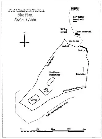 Le fort Charlotte a été construit par des ingénieurs royaux britanniques en 1794 à une altitude d'environ 947 pieds au-dessus de Road Town au sommet d'une palissade en bois qui aurait été fondée à l'origine par le corsaire Joost van Dyk pour servir de poste d'observation. Il n'était entouré de murs au sens traditionnel du terme car le principal matériau utilisé était la terre cuite. Cependant, son élévation signifiait qu'il n'y avait absolument aucune possibilité d'être attaqué par les canons des navires ennemis. Le seul moyen de prendre le fort était de permettre aux troupes de gravir la colline alors même qu'elles étaient soumises à de lourds tirs de mousquet et de canons.