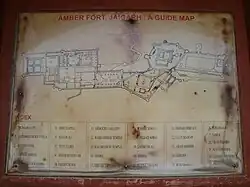 Ce qui est connu de nos jours comme le fort Jaigarh était en fait alors la principale structure défensive plutôt que le palais lui-même. Les deux structures sont interconnectées par une série d'enceintes fortifiées et de tunnels.
