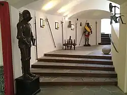 Au premier étage, se trouvaient autrefois les dortoirs des troupes, la salle d’armes, la salle du trône, la prison, et le four.