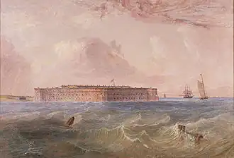 Des épidémies de fièvre jaune et la difficulté pour transporter les matériaux de construction ralentissent l’édification du fort. Les travaux se poursuivent dans les années 1850. Durant les prémices de la guerre de Sécession en 1861, le capitaine nordiste John Milton Brannan prend le contrôle du fort et évite ainsi à celui-ci de tomber aux mains de l’armée des Confédérés. Le fort devient ainsi un poste avancé. Au début, le fort était entouré par les eaux avec juste un accès vers la terre ferme. Complété totalement en 1866, ses niveaux hauts furent réaménagés en 1889 pour accueillir de nouvelles armes. Le fort fut très utilisé en 1898 durant la guerre hispano-américaine[3].
