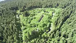 - ↑ 250 m sur 170 m de dimensions maximales.