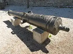 Ce canon classique français a été découvert en mer en 1995 au nord de l'île Sainte-Marguerite par 41 m de fond, par Pierre Gabrielle et Henri Mielloux. Il a été fondu en 1715 à Strasbourg par Antoine de Bercan, commissaire aux fontes. Il est en bronze, d'un calibre de 24 livres. Longueur : 3,68 m. Poids : 2,800 kg. Il porte la devise Ultima ratio regum (= le dernier argument des rois) et les armoiries de ses commanditaires :