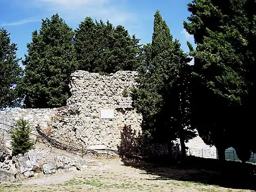 Il ne reste que quelques ruines, où l'on peut voir quelques sections des murs d'enceinte et la base quadrangulaire de l'ancienne forteresse. Toutes les structures murales sont entourées d'une série d'arbres, dont beaucoup sont des cyprès, qui permettent d'identifier la zone depuis l'extérieur de la ville.