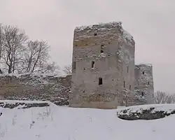 L'église Saint-Nicolas date de 1341, soit la même époque que la forteresse de 1330. Ses arcs à plusieurs voussures se rattachent à l'architecture de Pskov. Ses murs sont de pierre locale avec quatre piliers, une coupole et une abside.