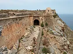 À l'intérieur de la forteresse, sont situées les ruines des bâtiments de la garnison. Parmi les bâtiments les mieux préservés figurent deux grands réservoirs d'eau de pluie, un entrepôt de munitions, ainsi qu'une église dédiée à l'Evangelismós (grec moderne : Ευαγγελισμός) ou à la Panagía Kleftrína (grec moderne : Παναγία Κλεφτρίνα)[1],[2]. En 1588, la forteresse est mentionnée comme possédant un nombre total de 24 canons[2] puis, au cours de la période ottomane, un nombre total de 66 canons[3].