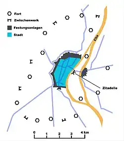 | Fort IV | 1866/73 | 1912 Démolition totale, surface entièrement construite | 52°08′N 11°39′E / 52.14°N 11.65°E | ||