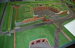 | Fossé occidental de la forteresse avec cuvette, mur d'escarpe et de contrescarpe | ![]() |