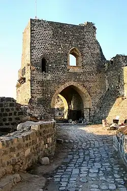 La forteresse avait un avantage sur le krak des Chevaliers, c’est de ne pas dépendre complètement de son approvisionnement en eau par un aqueduc et des bassins servant de réserves d’eau ; il y a des puits comme celui qu’on peut encore voir dans la cour. La chapelle a été construite par les Hospitaliers vers 1186. Vers 1270, l'entrée principale fut établie dans la barbacane au milieu du front ouest. On y accède par un escalier en pente douce puis par un pont.
