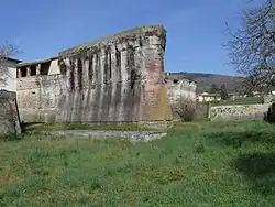 Cependant, la structure a été construite sur une structure préexistante et n'est donc qu'en partie l'œuvre de Giuliano da Sangallo : il s'agit en fait d'une construction qui s'est progressivement stratifiée au fil du temps, surtout pour s'adapter aux nouvelles exigences militaires et techniques plus avancées. Autour de la fortification, il y avait un grand fossé qui isolait complètement la forteresse de la ville et qui a été en grande partie comblé.