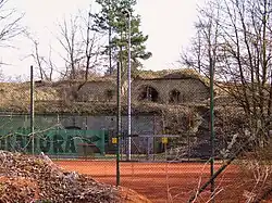 Redoute de Teltow | Rempart avec traverse creuse et fossé, achevé en 1866. Seul un tiers des remparts est conservé. Le réduit est démoli. | |