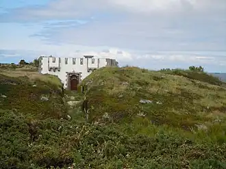 Position de batterie, le site conserve un corps de garde crénelé modèle 1846 édifiée en 1858, enfoncé dans le relief de la pointe de Kerdonis en retrait de la mer et protégé par des rochers.