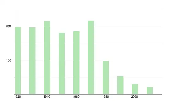 | 1950 | 181 | ▼ −15,42 % | |
