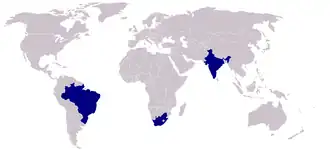 - ↑ IBSA, selon l'abréviation anglophone (India, Brazil, South Africa)