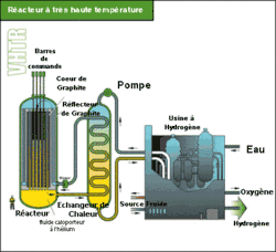 Il peut aussi ne pas y avoir de turbine mais un échangeur récupérant des calories à très haute température (tHT) alimentant un procédé thermo-chimique (de type iode-soufre) pour la production d’H2.