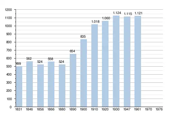 - Sources : INS, Rem. : 1831 jusqu'en 1970 = recensements, 1976 = nombre d'habitants au 31 décembre.