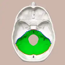 Le plancher est formé par la partie inférieure endocrânienne de l'écaille de l'os occipital, la face supérieure de sa partie basilaire. Les parois latérales antérieures sont formées par les faces postéro-supérieures endocrâniennes de la partie pétreuse de l'os temporal et des faces endocrâniennes de sa portion mastoïdienne.