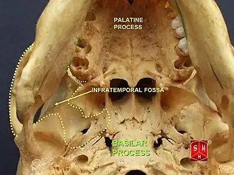 La fosse infratemporale (ou fosse ptérygo-maxillaire ou fosse sous temporale ou fosse zygomatique) est une cavité du crâne de forme irrégulière, située en dessous et en dedans de l'arcade zygomatique.