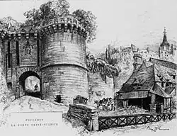 Albert Robida, Fougères: la Porte Saint-Sulpice (vers 1900), lithographie.